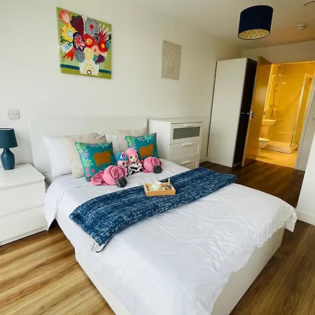 The spacious Modern & Cozy Apartment With Balcony, Near Media City Centre & Old Trafford Stadium Manchester boasts views of the street and is located 25 minutes' walk from the Old Trafford Cricket Ground. The apartment offers private parking on site.